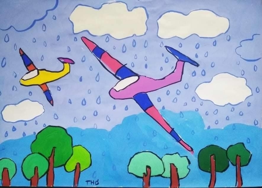 Mưa có cầu vồng ánh xanh ánh đỏ,