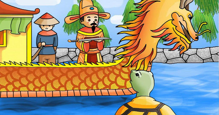 Nghe nói thế nhà vua bỗng hiểu ra bèn thò tay rút gươm ra khỏi bao. Chỉ một lát thanh gươm thần rời khỏi tay vua bay đến phía rùa vàng. Nhanh như cắt, rùa há miệng đớp lấy ngang lưỡi. Cho đến khi gươm và rùa lặn xuống, người ta vẫn thấy có vệt sáng le lói dười mặt nước hồ xanh.