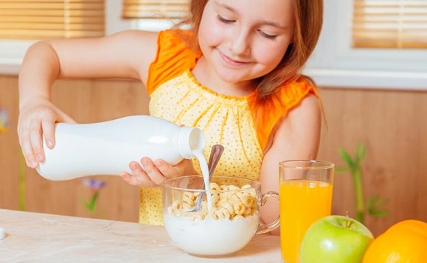 bữa sáng cho con, cho bé uống 1 ly sữa trong vòng 1 giờ sau khi thức dậy