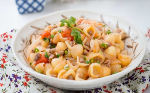 Nguyên liệu: Nui, thịt bò, cà chua, hành tây (không cần nếu trẻ không thích ăn), gia vị mắm muối.