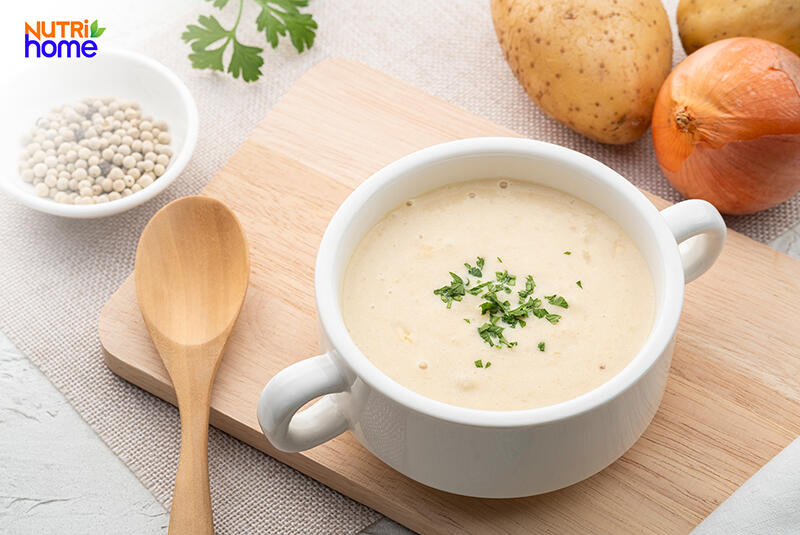 - Sữa pha theo đúng tỷ lệ, sau đó nấu cùng khoai tây đến khi khoai chín mềm.