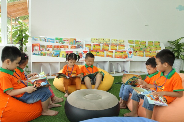 Trẻ em lứa tuổi mầm non, những hình ảnh trực quan sẽ để lại những ấn tượng sâu sắc cho trẻ. Vì vậy, sách cho các con sử dụng đều là những sách có nhiều hình ảnh và màu sắc sặc sỡ. Bên cạnh những giờ học hát, học múa, học vẽ,... các con học sinh trường Mầm non mầm non Đô thị sài đồng luôn có giờ hoạt động thư viện nhằm giúp các con bắt đầu làm quen với việc mở - đóng sách, lấy - cất sách và xây dựng văn hóa đọc sách.
