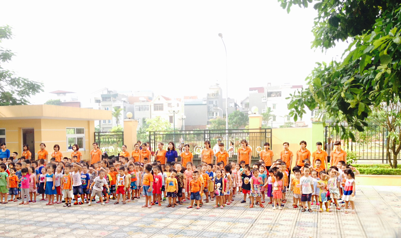 Tất cả các bé, mặc dù còn rất nhỏ, nhưng đều được các cô dạy và thuộc lòng từng câu chữ của bài hát Quốc ca Việt Nam thiêng liêng. Bé nào cũng háo hức, phấn khởi, đứng trang nghiêm, mắt hướng về lá cờ tổ quốc và đồng thanh hát vang bài quốc ca cùng cô giáo và các bạn.