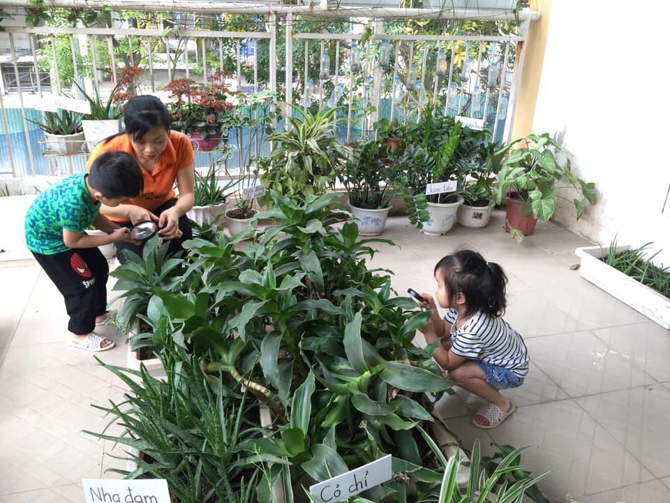 Các cây xanh, cây hoa không chỉ làm cảnh, làm đẹp mà còn cho các bé thực hành một số kỹ năng trong cuộc sống: chăm sóc cây xanh, yêu thiên nhiên, gần gũi với thiên nhiên.