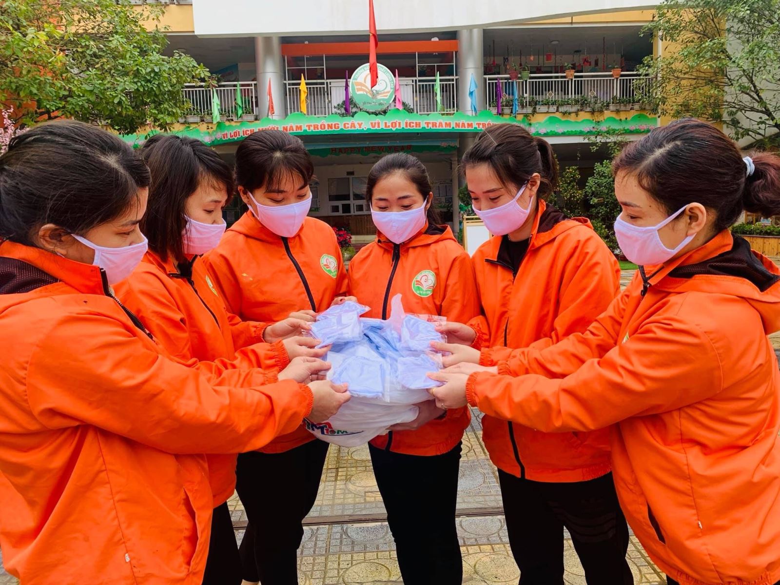 - Cô giáo Nguyễn Ngọc ánh đã may ủng hộ nhà trường 100 khẩu trang.