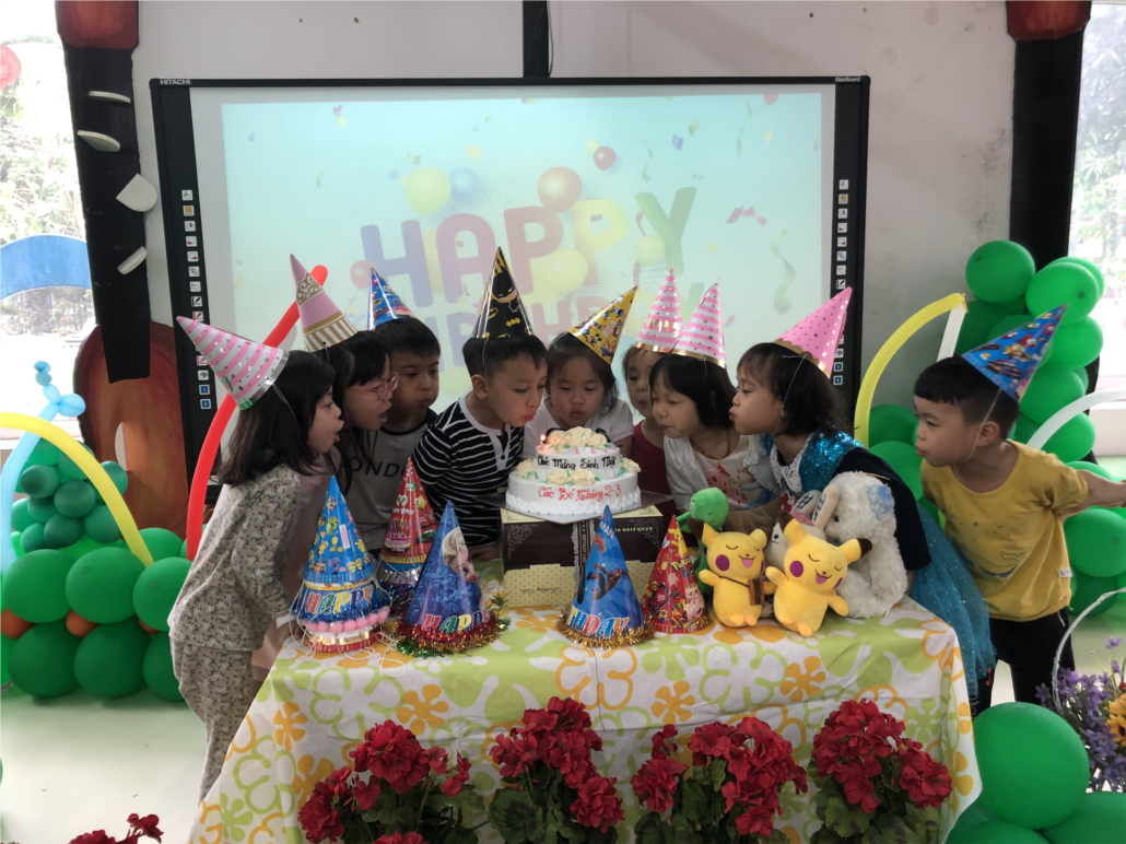 🎂Để đem lại niềm vui, sự bất ngờ thú vị và không gian đặc biệt dành cho các bé, nhà trường đã chuẩn bị chu đáo những bông hoa, bánh kem … và cùng nhau trang trí với những lời chúc tốt đẹp nhất để tổ chức một buổi tiệc sinh nhật tập thể đúng nghĩa nơi đây đúng là gia đình thứ hai của trẻ.🍬🍬