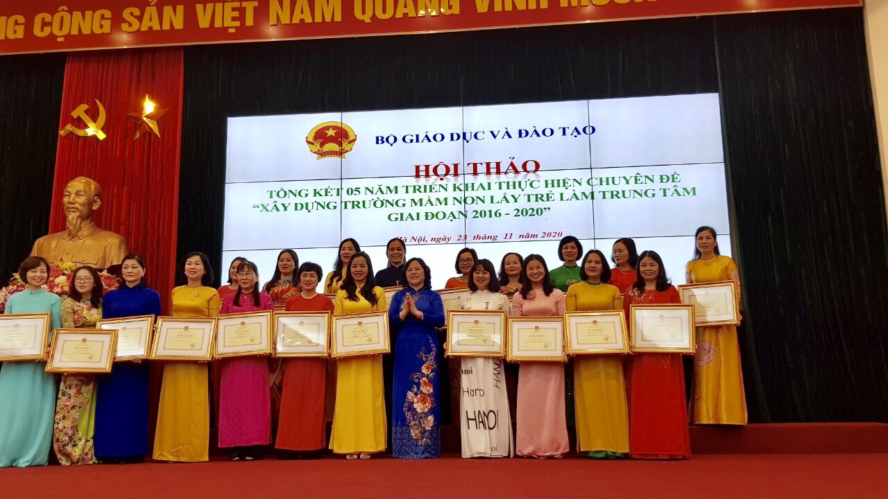 Tại Hội thảo, các đại biểu được nghe những chia sẻ , ý kiến của các tham luận vô cùng quí báu về kinh nghiệm và kết quả thực hiện chuyên đề của đại diện các đơn vị Sở GD, Phòng GD, trường Mầm non. Đặc biệt, Hội thảo được nghe những ý kiến ghi nhận của các Đ/c lãnh đạo Bộ GD&ĐT về sự nỗ lực thực hiện chuyên đề của Cấp học Mầm non nói chung và các đơn vị GDMN nói riêng. Tại buổi hội thảo đã tổng kết đã đánh giá những nội dung của cuộc thi “ xây dựng môi trường lấy trẻ làm trung tâm” trong các sở giáo dục mầm non theo kế hoạch 739/ KH- BGDĐT của Bộ GDĐT, cuộc thi đã tạo nên những thay đổi cơ bản về nhận thức của CBQL và GV, cộng đồng và đặc biệt là cha mẹ trẻ em về vai trò của môi trường giáo dục từ cảnh quan bên ngoài đến bên trong lớp học, tọa hứng khởi cho cả cô và trẻ mỗi ngày đến trường và hơn nữa còn tạo được sự tin tưởng của gia đình và cộng đồng đối với giáo dục mầm non. Đặc biệt trường MNĐTSĐ là 1 trong các trường được Bộ GDĐT đánh giá cao trong quá trình thực hiện chuyên đề này, Trường đã được đón tiếp các đoàn các cơ sở giáo dục mầm non 63 tỉnh thành về thăm quan học tập. Thật vinh dự cho nhà trường là một trong 05 trường Mầm non đại diện cấp học Mầm non thành phố Hà Nội được Bộ trưởng Bộ GDĐT tặng bằng khen số 3770- QĐ/BDGĐT : đã có thành tích xuất sắc trong tổ chức chuyên đề” Xây dựng môi trường lấy trẻ làm trung tâm”giai đoạn 2016-2020. Đây chính nguồn động viên vô cùng ý nghĩa, là sự ghi nhận của các cấp lãnh đạo đối với tập thể nhà trường và là động lực để nhà trường tiếp tục phấn đấu hoàn thành xuất sắc các nhiệm vụ được giao. Dưới đây là một số hình ảnh của Buổi hội thảo: