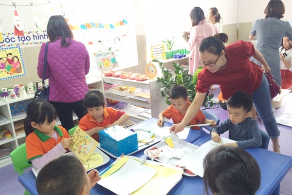Đoàn tham quan dự giờ các hoạt động trên lớp và tham quan khung cảnh sư phạm nhà trường