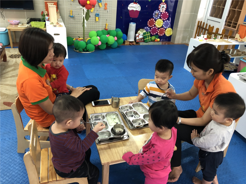 Sau những ngày nghỉ tết vui vẻ bên gia đình, bé được thưởng thức các món ăn cổ truyền, được bố mẹ cho du xuân khắp nơi. Tuần đầu tiên sau kỳ nghỉ Tết bé lại đi học đều, rất chăm ngoan. Cô giáo lại dạy bé xếp hàng rửa tay sạch sẽ trước giờ ăn, cô giới thiệu tên các món ăn cho bé biết và giải thích cho bé biết tại sao bé phải ăn đủ các món ăn, ăn hết xuất. Cô động viên bé tự xúc ăn, tuy cầm thìa còn vụng về, nhưng bé rất háo hức khi tự mình xúc, tự mình ăn.