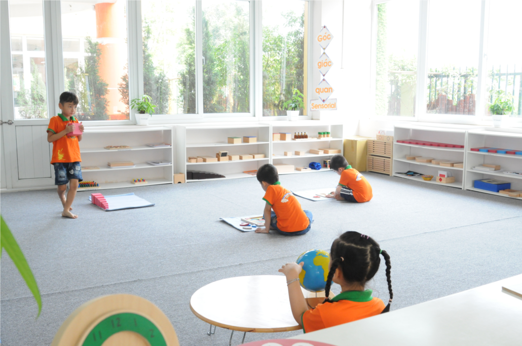 Để hình thành cho trẻ kỹ năng tự phục vụ, các kĩ năng sử dụng đồ vật thật: Sử dụng dao, cốc , bát, thìa, các kĩ năng căt, thái,.. tại phòng ứng dụng Montessori với hơn 500 bài tập và hệ thống đồ dùng giáo cụ trực quan ở các góc Nghệ thuật, toán, văn hóa, thực hành cuộc sống, ngôn ngữ, giác quan. Hàng ngày các cô giáo phối kết hợp với giáo viên dạy phương phápMontessori hướng dẫntrẻ được trải nghiệm với các giáo cụ trực quan. Dưới sự giám sát, hướng dẫn của cô giáo đãluyện tập và hình thành dần các kĩ năng tự phục vụ biết nhường nhịn, biết chờ đợi và các trật tự xã hội như biết xếp hàng, nói nhỏ, chờ đợi tới lượt và đặc biệt trẻ biết lấy, cất đồ dùng về đúng vị trí khi thự hiện các hoạt động, các bé về giúp về nhà giúp đỡ ông bà bố mẹ nhé.