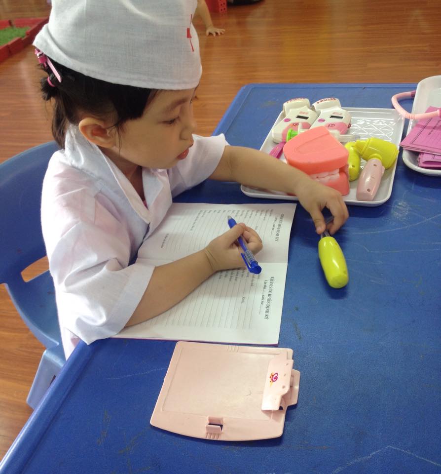 Bé được đóng vai làm bác sĩ và khám bệnh cho bệnh nhân