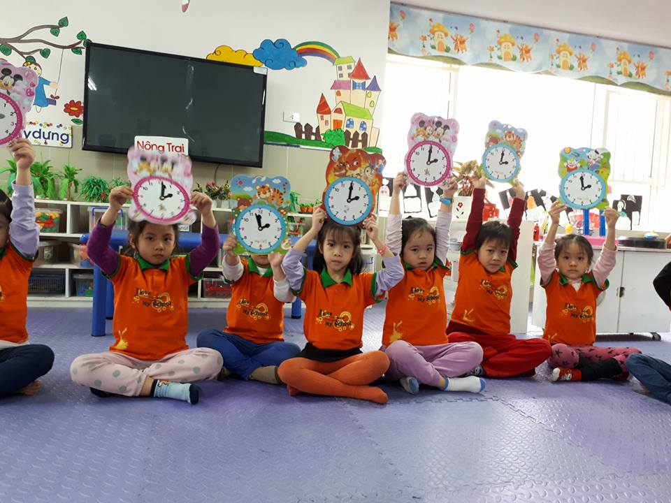 Cô Lan Anh đang dạy các bạn lớp Mẫu giáo Lớn A4 cách xem đồng hồ đấy nhé!