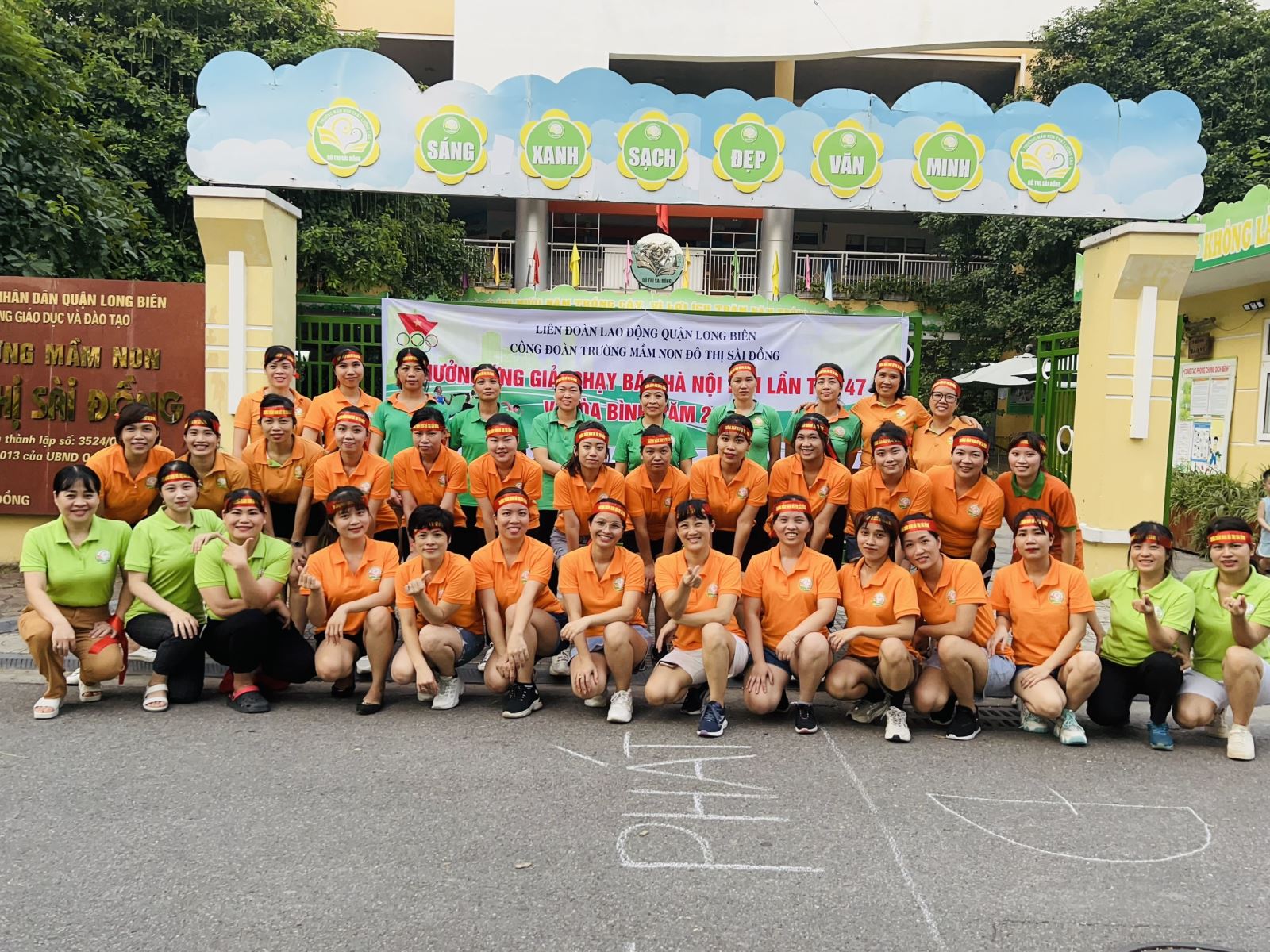 Hưởng ứng Lễ phát động Cuộc vận động “Toàn dân rèn luyện thân thể theo gương Bác Hồ vĩ đại”, chiều ngày 19/8/2022, toàn bộ CBGVNV trường màm non Đô thị Sài Đồng đã hứng khởi sôi nổi tham gia . Cuộc thi chạy được diễn ra tại tuyến đường quanh trường. Các vận động viên ai nấy đều vui vẻ, cố gắng nỗ lực hết mình để chạy thật nhanh về đích.