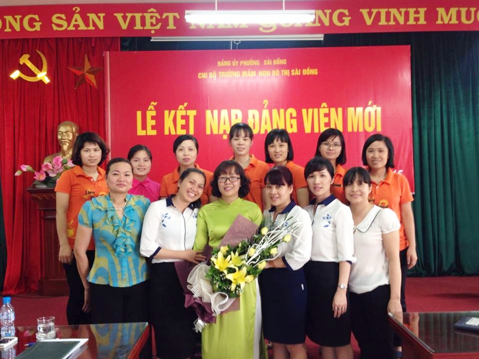 Lễ kết nạp được diễn ra trong không khí trang nghiêm, đúng trình tự, thủ tục kết nạp Đảng viên mới với sự tham gia của đồng chí Nguyễn Thị Kim Xuyến – Phó bí thư thường trực đảng ủy Phường Sài Đồng, đồng chí Trần Thị Phương Dung - Bí thư Chi bộ – Hiệu trưởng Trường Mầm non Đô thị Sài Đồng, đồng chí Nguyễn Thị Loan - Phó bí thư Chi bộ nhà trườn và các Đảng viên trong chi bộ Trường Mầm non Đô thị Sài Đồng. Tại buổi Lễ, đồng chí Trần Thị Phương Dung - Bí thư Chi bộ đã trao Quyết định kết nạp và phân công nhiệm vụ cho đảng viên mới, đồng thời phân công các đồng chí đảng viên chính thức trong chi bộ tiếp tục giúp đỡ, dìu dắt các đồng chí đảng viên mới trong thời gian thử thách 12 tháng.