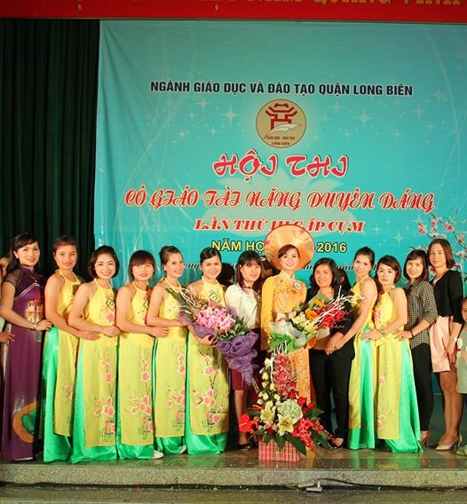 Với tà áo dài mềm mại, thướt tha, bước chân uyên chuyển, duyên dáng, khuôn mặt xinh tươi rạng rỡ, cô đã thể hiện được vẻ đẹp của người nữ giáo viên trường Mầm non Đô Thị Sài Đồng nói riêng và người phụ nữ Việt Nam nói chung.