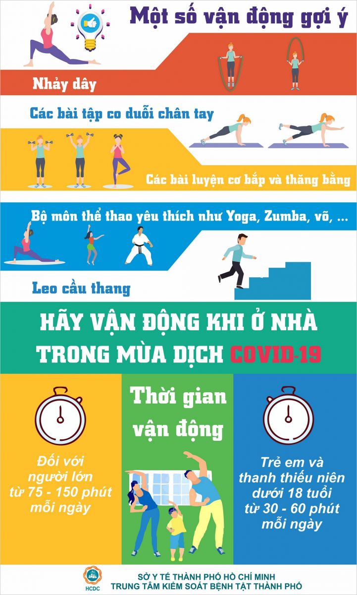 Hoạt động thể chất thường xuyên có lợi cho cả cơ thể và tâm trí. Nó có thể làm giảm huyết áp, giúp kiểm soát cân nặng và giảm nguy cơ mắc bệnh tim, đột quỵ, đái tháo đường típ 2 và các bện ung thư, mà những bệnh lý nền này có thể làm tăng nguy cơ mắc COVID-19.