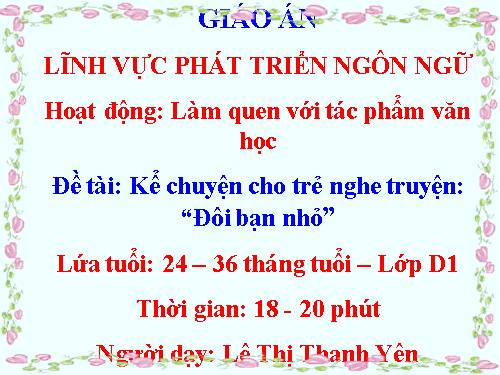 Đề tài: Kể chuyện cho trẻ nghe truyện: “Đôi bạn nhỏ”
