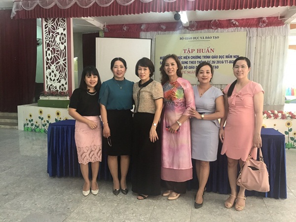 Đ/c Trần Thị Phương Dung – Hiệu trưởng nhà trường được thay mặt nhà trường tham dự tập huấn “Hướng dẫn thực hiện chương trình Giáo dục mầm non sửa đổi, bổ sung một số nội dung ban hành kèm theo thông tư 28/2016/TT-BGD&ĐT cho cán bộ quản lý và giáo viên mầm non cốt cán” tại khu vực miền trung – Thành phố Đà Nẵng. Các hoạt động giáo dục, mô hình hoạt động của nhà trường được chia sẻ tại hội nghị. Bộ Giáo dục & đào tạo, các sở Giáo dục và đào tạo của 22 tỉnh thành miền trung ghi nhận và đánh giá cao nội dung chia sẻ của nhà trường. Trong năm học tới, nhà trường sẽ càng thêm vững vàng trong công tác chăm sóc giáo dục trẻ.