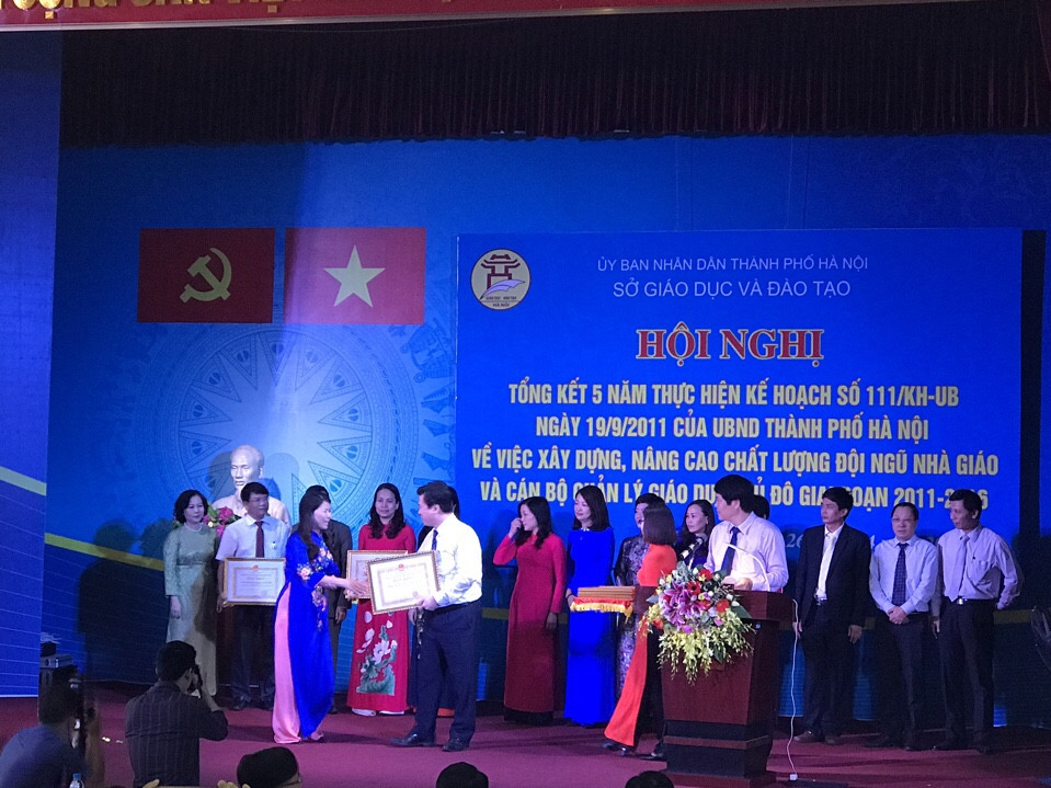 Ngày 26/04/2017, Đồng chí Trần Thị Phương Dung – Hiệu trưởng nhà trường đã thay mặt tập thể cán bộ giáo viên nhân viên nhà trường tham dự “Hội nghị tổng kết 5 năm thực hiện kế hoạch số 111/KH-UB ngày 19/09/2011 của UBND Thành phố Hà Nội về việc xây dựng, nâng cao chất lượng đội ngũ nhà giáo và cán bộ quản lý giáo dục thủ đô giai đoạn 2011-2016”.