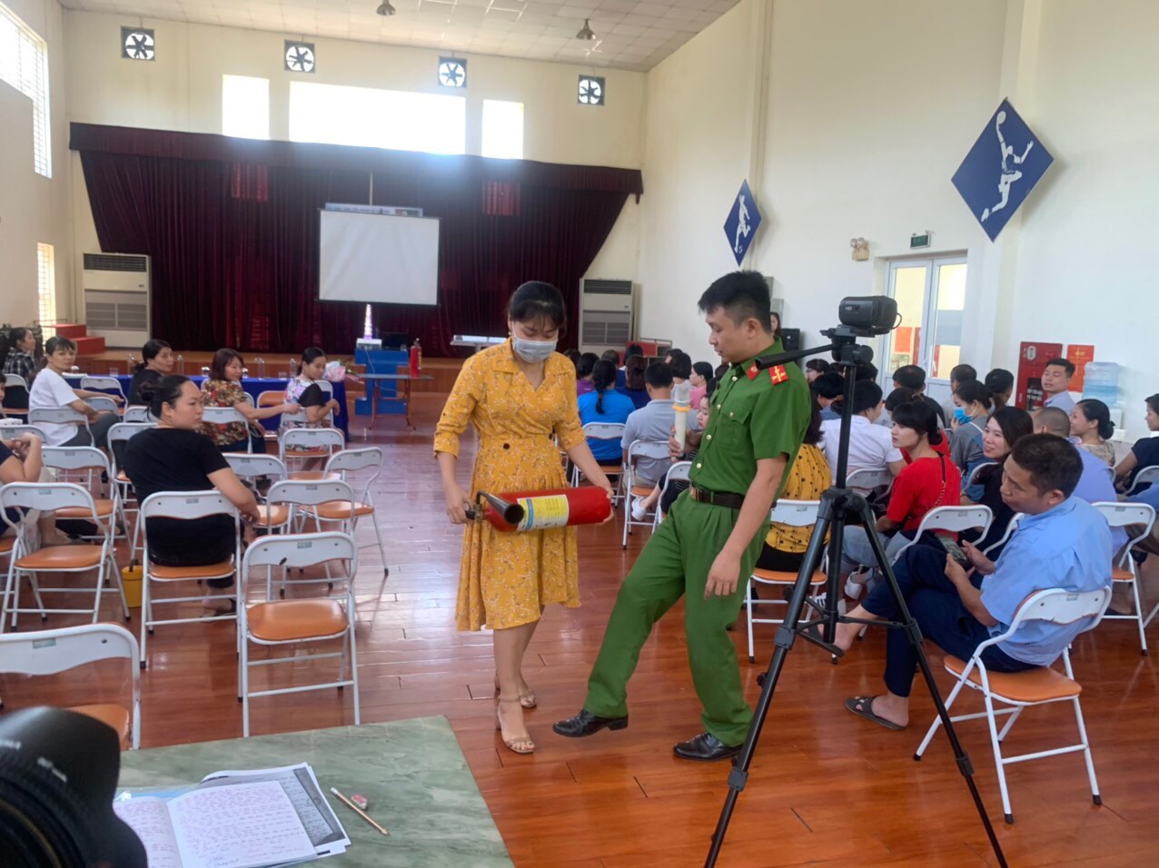 Tại buổi Tập huấn, bên cạnh việc cung cấp những thông tin về một số vụ cháy lớn gây thiệt hại nghiêm trọng về người và tài sản xảy ra trên phạm vi cả nước trong những năm gần đây, giảng viên đã truyền đạt những kiến thức cơ bản về công tác PCCC, các nguyên nhân gây ra cháy nổ, cách cứu người bị thương khi chữa cháy và một số biện pháp PCCC tại cơ quan và gia đình. Sau phần phổ biến lý thuyết, dưới sự hướng dẫn của các chiến sỹ công an Phòng Cảnh sát PCCC CBGVNV nhà trường đã được thực hành cách sử dụng các phương tiện bình bột, bình CO2 để dập tắt đám cháy và cách thức xử lý nhanh các tình huống có thể xảy ra.